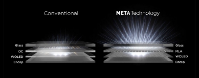 MLA 通過(guò)在面板內使用數十億個(gè)透鏡的均勻圖案,可以顯著(zhù)減少內部反射,在減少屏幕功耗延長(cháng)續航的同時(shí),可以進(jìn)一步提高屏幕亮度。