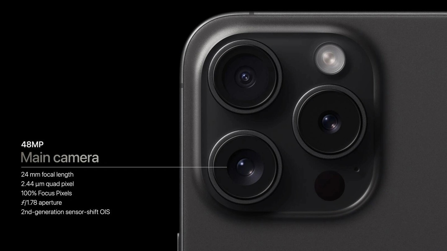 蘋(píng)果今天發(fā)布的 iPhone 15 Pro 系列機型配備了升級的相機系統,例如更大更先進(jìn)的 48MP 主攝,還有可減少鏡頭眩光的新涂層等等。