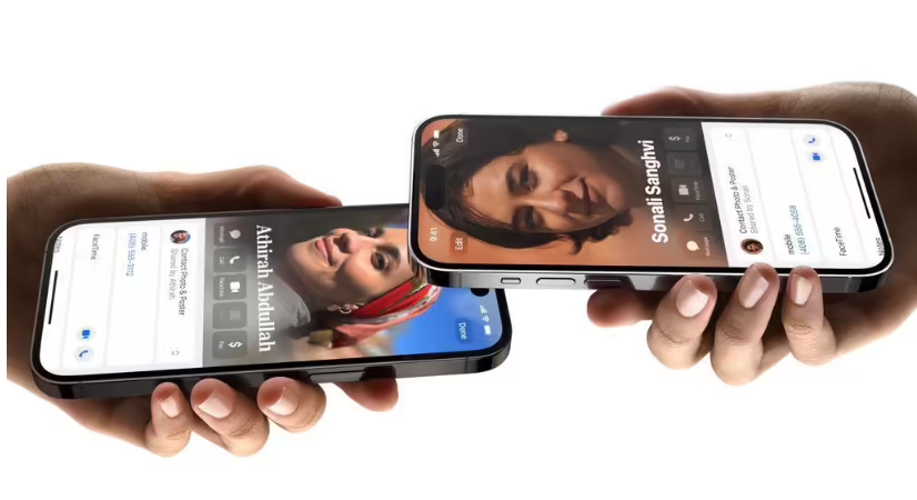 用戶(hù)只需將兩臺 iPhone 放在一起,或者將一臺 iPhone 和一支 Apple Watch 放在一起,就能通過(guò) NameDrop 功能輕松分享聯(lián)系人信息。