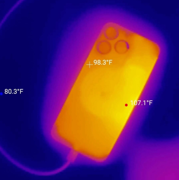 在升級 iOS 17.0.3 系統之前,iPhone 15 Pro 和 iPhone 15 Pro Max 在充電狀態(tài)下最高溫度為 107.1 華氏(41.7 攝氏度),而且經(jīng)常會(huì )超過(guò) 100 華氏。