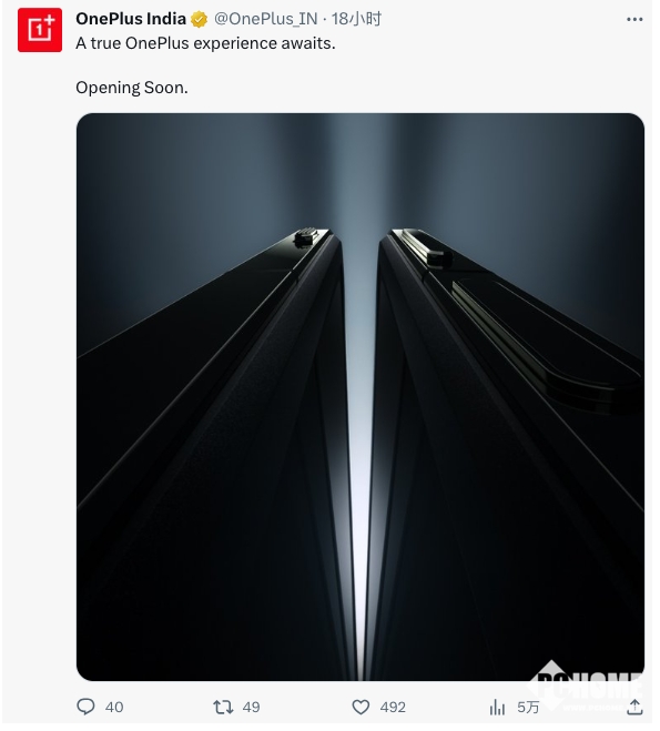 近日,一加India的官方賬號在社交媒體發(fā)文稱(chēng):“真正的一加體驗即將到來(lái),敬請期待。”并附上了一張圖片,展示了新機將采用內折方案。這也意味著(zhù),一加的首款折疊屏手機將在印度市場(chǎng)發(fā)布。