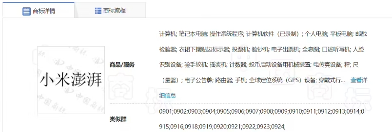 小米申請注冊澎湃、HYPER 商標,國際分類(lèi)包含操作系統程序
