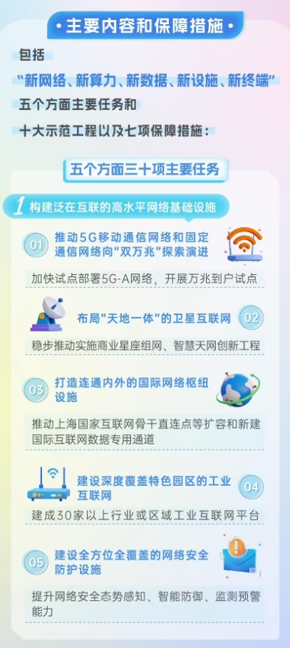 公告稱(chēng),此方案旨在進(jìn)一步推進(jìn)具有上海特色的新型基建、加快推進(jìn)上海城市數字化轉型,提升城市能級、核心競爭力。部分目標、任務(wù)如下: