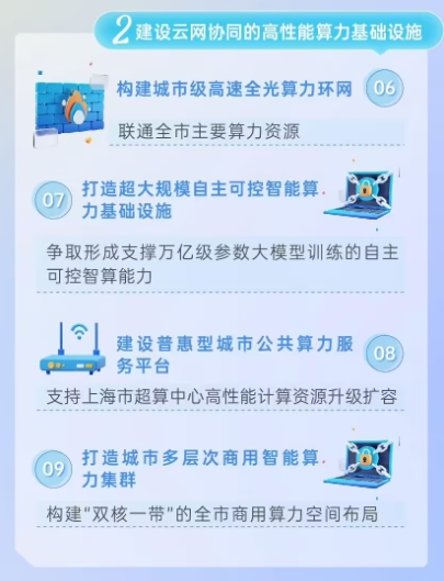 打造超大規模自主可控智能算力基礎設施:支持有關(guān)創(chuàng )新平臺牽頭建設自主可控智能算力重大科技基礎設施,打造基于自主可控通用人工智能芯片、自主可控光電混合計算芯片、自主可控訓練框架、自主可控全光交換網(wǎng)絡(luò )的超大規模智能算力集群,率先爭取形成支撐萬(wàn)億級參數大模型訓練的自主可控智算能力,服務(wù)重點(diǎn)企業(yè)的大模型訓練需求。