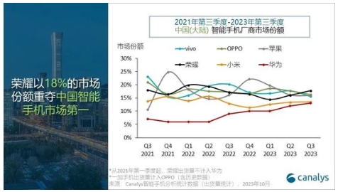 而市場(chǎng)數據也佐證這一判斷,IDC、Canalys和Counterpoint三大機構近日先后發(fā)布的統計報告都顯示,榮耀位列2023年三季度中國智能手機市場(chǎng)第一。