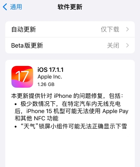 更新修復了在極少數情況下,在特定汽車(chē)內無(wú)線(xiàn)充電后,iPhone 15機型可能無(wú)法使用Apple Pay和其他NFC功能。
