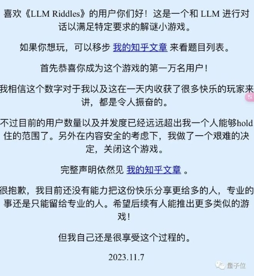 最后范浩強做了一個(gè)“艱難的決定”,把游戲關(guān)服,但還是希望將來(lái)有人能把這個(gè)玩法發(fā)揚光大,探索出更多 AI 模型的秘密。