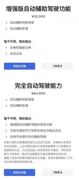 FSD為完全自動(dòng)駕駛能力,在EAP的基礎上增加了識別交通信號燈和停車(chē)標志并做出反應的能力,以及在城市街道中自動(dòng)輔助駕駛等功能,目前在國內售價(jià)為6.4萬(wàn)元。
