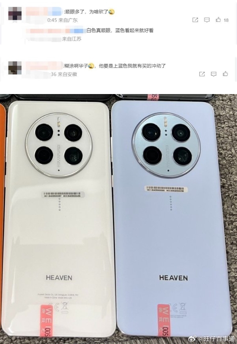 博主旺仔百事通曬出了華為Mate 50白色和藍色版工程機,這兩款配色都沒(méi)有上市。