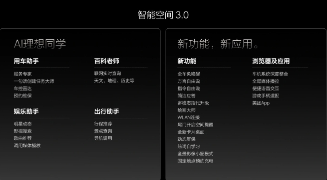 Mind GPT 基于理想同學(xué)的重點(diǎn)場(chǎng)景,量身定制了覆蓋 111 個(gè)領(lǐng)域、超過(guò) 1000 種以上的專(zhuān)屬能力。新版理想同學(xué)支持方言自由說(shuō)、指令自由說(shuō)、簡(jiǎn)潔模式以及全時(shí)全車(chē)免喚醒的能力。