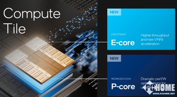 低功耗能效核的加入,加上計算單元里本來(lái)的性能核心(Redwood Cove)和能效核(Crestmont)的組合,就組成了低功耗能效核心(L-E)+能效核心(E)+性能核心(P)的全新3D高性能混合架構,一同帶來(lái)了英特爾迄今為止優(yōu)化程度最高的計算體驗。通過(guò)這種巧妙地組合,Meteor Lake也成了英特爾歷史上能效最高的客戶(hù)端平臺。