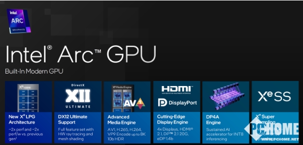 GPU模塊的變化也非常大,新的集成顯卡采用銳炫獨顯級的Xe LPG架構,性能提升幅度達到上代兩倍,全面支持DX12 Ultimate功能集,包括硬件光線(xiàn)追蹤、XeSS超級采樣。這意味著(zhù)在筆記本上,你可以使用集成顯卡去玩《CS2》《逆水寒》甚至是《賽博朋克2077游戲》,獲得60FPS以上的流暢幀率,獨顯不再是必選項。