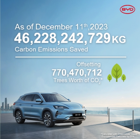 而最新數據顯示,截止2023年12月11日,比亞迪減少碳排放超過(guò)462萬(wàn)噸,相當于種植超7.7億棵樹(shù)。