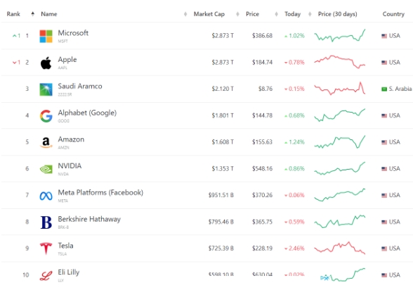 微軟正式超越蘋(píng)果 成為全球市值最高的公司