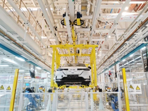 新工廠(chǎng)建成后將生產(chǎn)全新 e:N 系列電動(dòng)化車(chē)型,此前,總裝車(chē)間全線(xiàn)貫通,總裝領(lǐng)域 e:NS1 首臺完成車(chē)已順利下線(xiàn)。