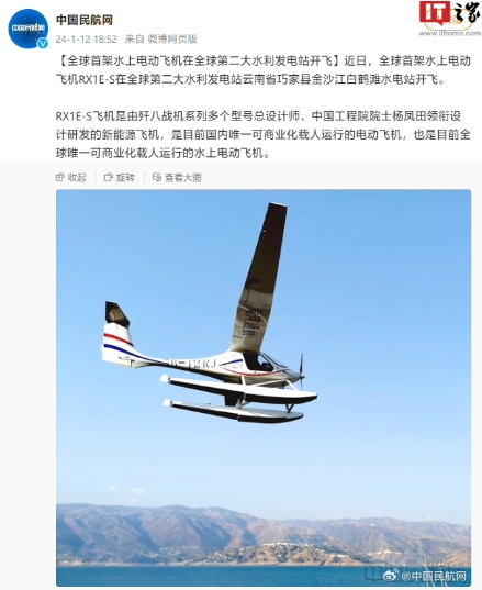 全球首架:國產(chǎn) RX1E-S 水上電動(dòng)飛機在全球第二大水利發(fā)電站開(kāi)飛 10:01:22