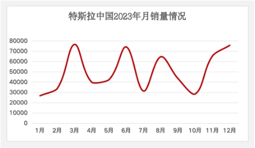 根據乘聯(lián)會(huì )的數據,10月~12月,特斯拉中國的零售銷(xiāo)量分別是2.86萬(wàn)臺、6.55萬(wàn)臺、7.58萬(wàn)臺。2023年,特斯拉勉強壓線(xiàn)完成全球180萬(wàn)輛的銷(xiāo)售目標。