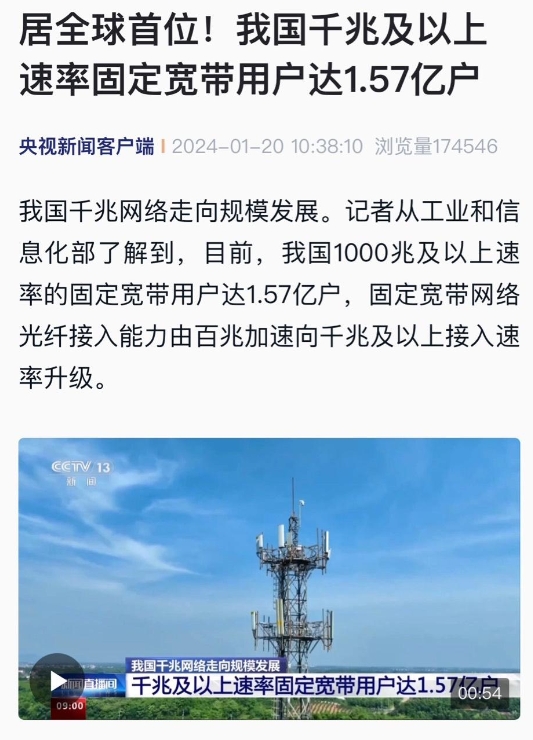 居全球首位,我國千兆及以上速率固定寬帶用戶(hù)達 1.57 億戶(hù)