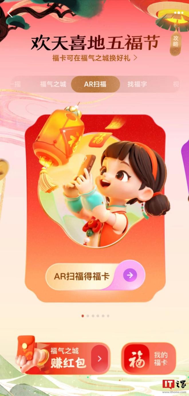 今年五福除了可以通過(guò) AR 掃任意福字、找福字、找能量、搖一搖、看視頻等方式集五福,還有很多新玩法: