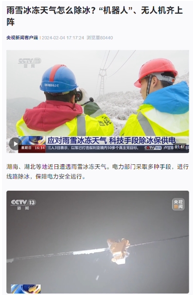 近日多地遭遇雨雪冰凍天氣,各地電力部門(mén)采用各種科技手段完成除冰、保障供電工作。