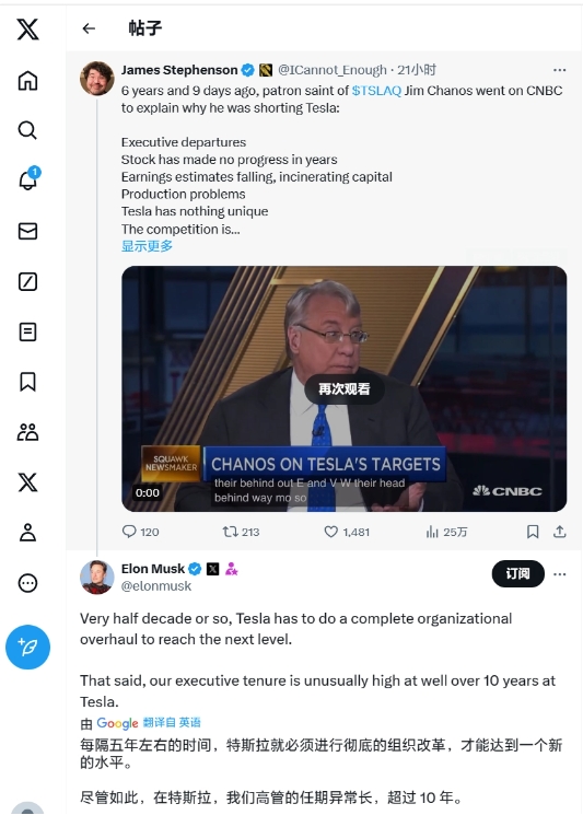 日前,馬斯克在自家的 X 平臺回復一則推文時(shí)透露,特斯拉必須每隔五年左右進(jìn)行全面的組織改革,才能達到一個(gè)新的水平。他補充說(shuō),“我們的高管任期高得有點(diǎn)異常,遠超 10 年。”