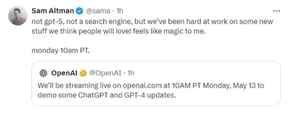OpenAI 官宣 5 月 13 日直播演示 ChatGPT 更新內容