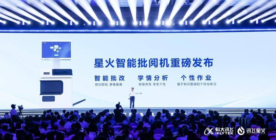 將作業(yè)放進(jìn)星火智能批閱機里,它能自動(dòng)掃描作業(yè),不限紙張大小,模仿真人筆跡,吐出來(lái)的作業(yè)已經(jīng)批改完成。