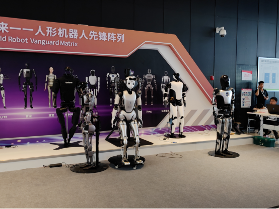 7月6日的WAIC展會(huì )上,展館內的很多設置、展品,對普通觀(guān)眾都非常友好。頗為吸睛的“十八金剛”人形機器人先鋒陣列,擺放在最顯眼的入口處,各式各樣的人形機器人引發(fā)觀(guān)眾連連驚嘆。