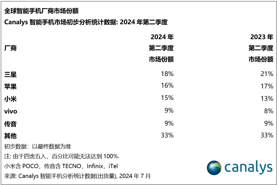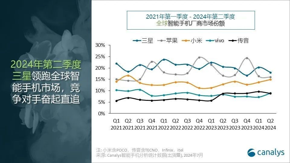 Canalys:2024 年 Q2 全球智能手機市場(chǎng)同比增長(cháng) 12%